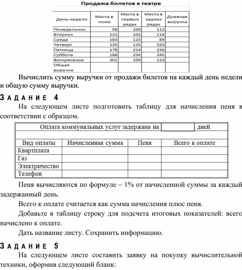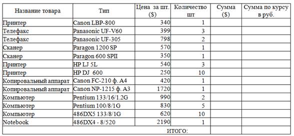 На следующем листе составить заявку на покупку вычислительной техники, оформив следующий бланк: