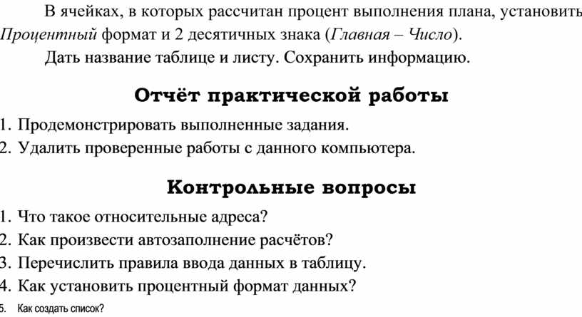 В ячейках, в которых рассчитан процент выполнения плана, установить Процентный формат и 2 десятичных знака (Главная – Число).