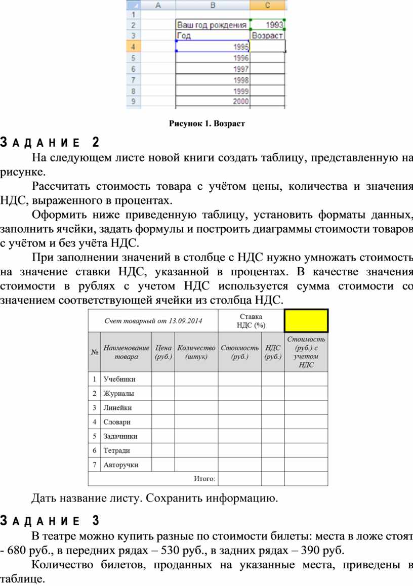 Оформить ниже приведенную таблицу, установить форматы данных, заполнить ячейки, задать формулы и построить диаграммы стоимости товаров с учётом и без учёта НДС.