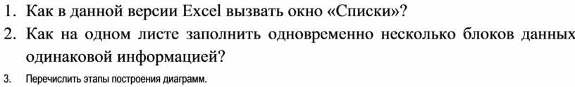 1. В любой строке или столбце таблицы Ехсеl вести последовательно названия объектов списка.