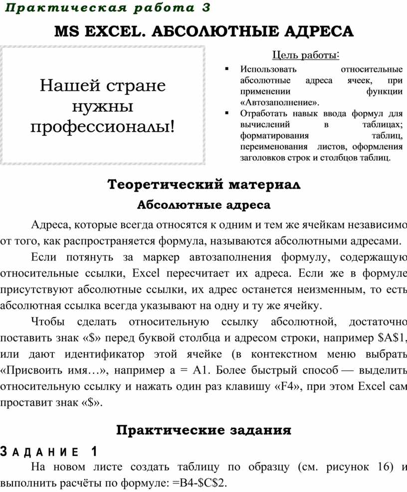 Адреса, которые всегда относятся к одним и тем же ячейкам независимо от того, как распространяется формула, называются абсолютными адресами.