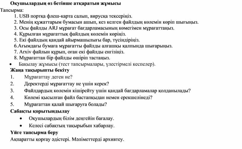 Оқушылардың өз бетінше атқаратын жұмысы |