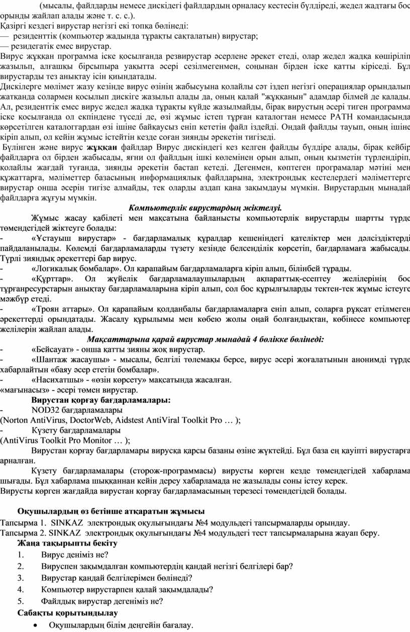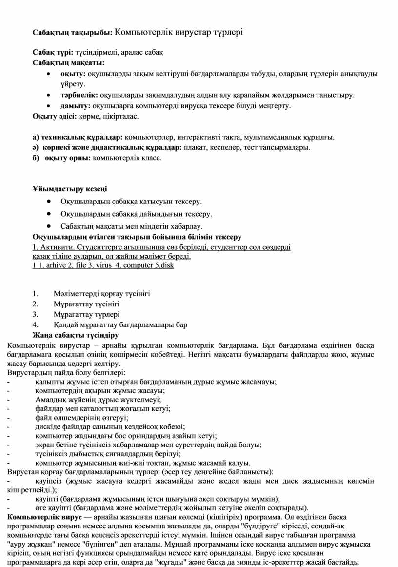 Сабақтың тақырыбы: Компьютерлік вирустар түрлері |