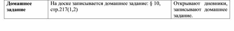 На доске записывается домашнее задание: § 10, стр.217(1,2) |