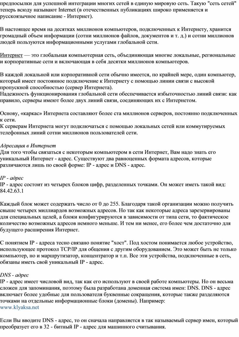 системы, но функции ее лежат в основе многих и многих процессов. Internet