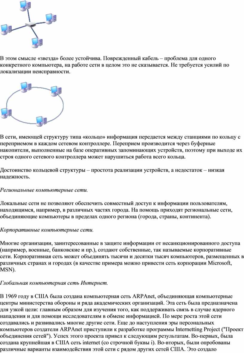 Локальные сети не позволяют обеспечить совместный доступ к информации пользователям, находящимся, например, в различных частях города. На помощь приходят региональные сети, объединяющие компьютеры в пределах одного региона (города, страны, континента).