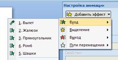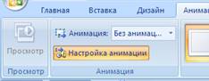 § на вкладке Анимация в группе Анимация установить Настройка анимации; |