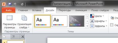 Для художественного оформления презентации на вкладке Дизайн выбрать любую Тему дизайна.