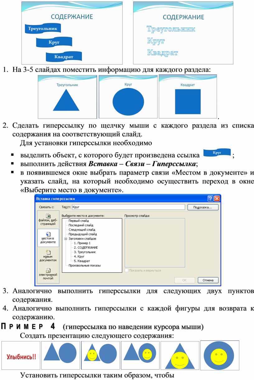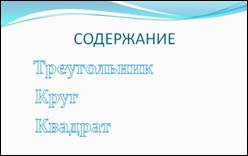 6. Аналогично выполнить гиперссылки с каждой фигуры для возврата к содержанию.