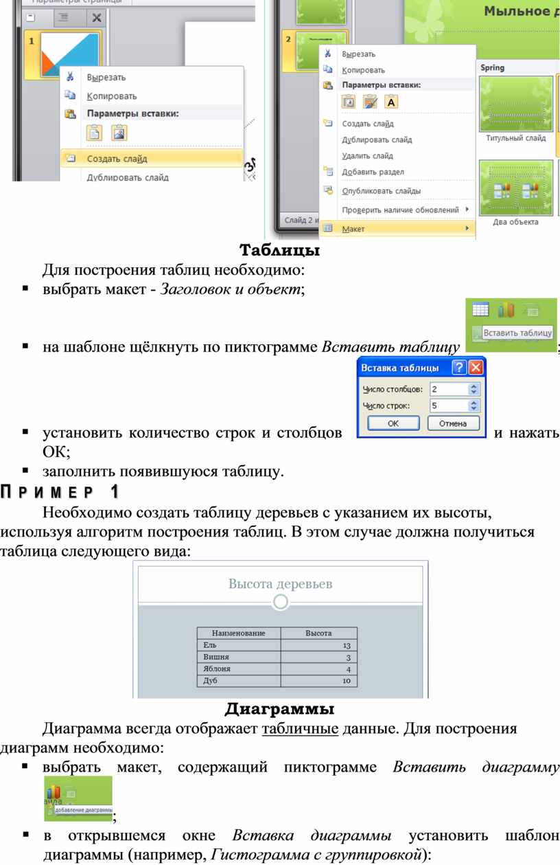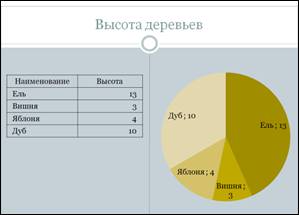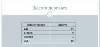 Необходимо создать таблицу деревьев с указанием их высоты, используя алгоритм построения таблиц. В этом случае должна получиться таблица следующего вида: