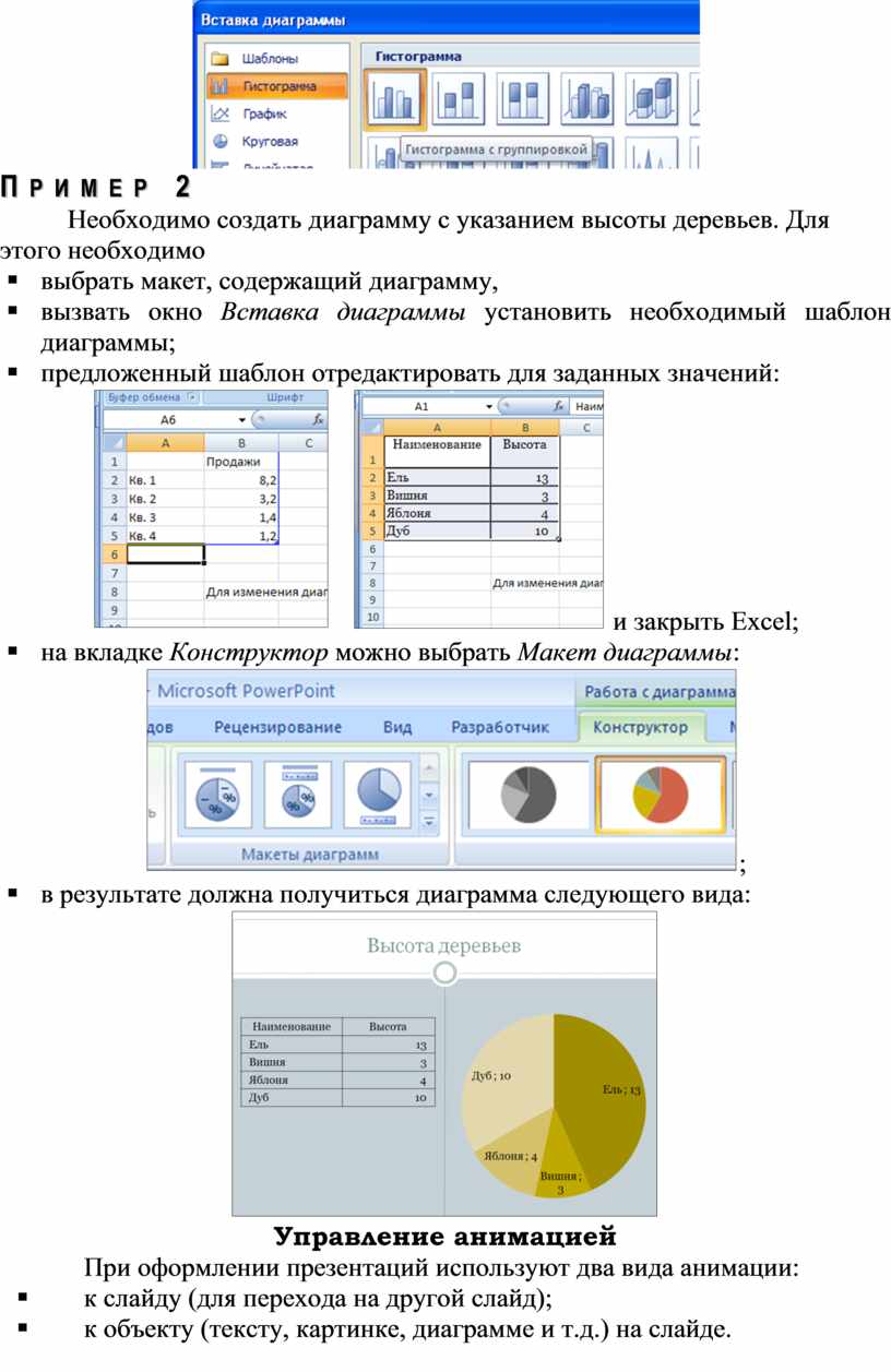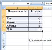 Необходимо создать диаграмму с указанием высоты деревьев. Для этого необходимо