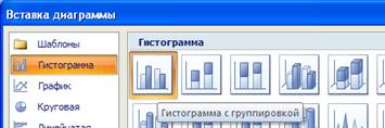 § в открывшемся окне Вставка диаграммы установить шаблон диаграммы (например, Гистограмма с группировкой):