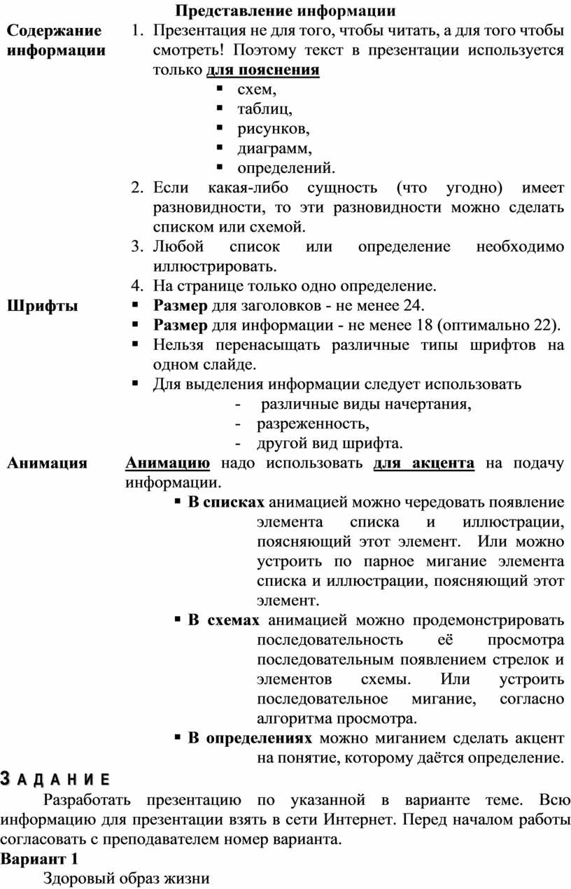 Разработать презентацию по указанной в варианте теме. Всю информацию для презентации взять в сети Интернет. Перед началом работы согласовать с преподавателем номер варианта.