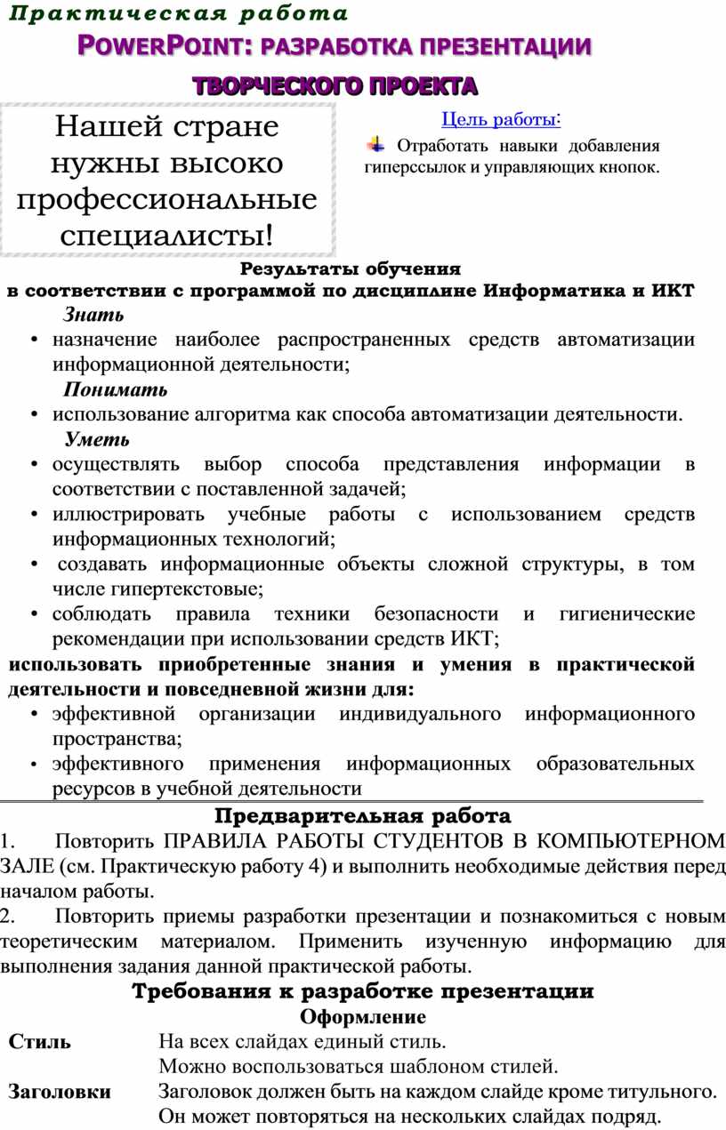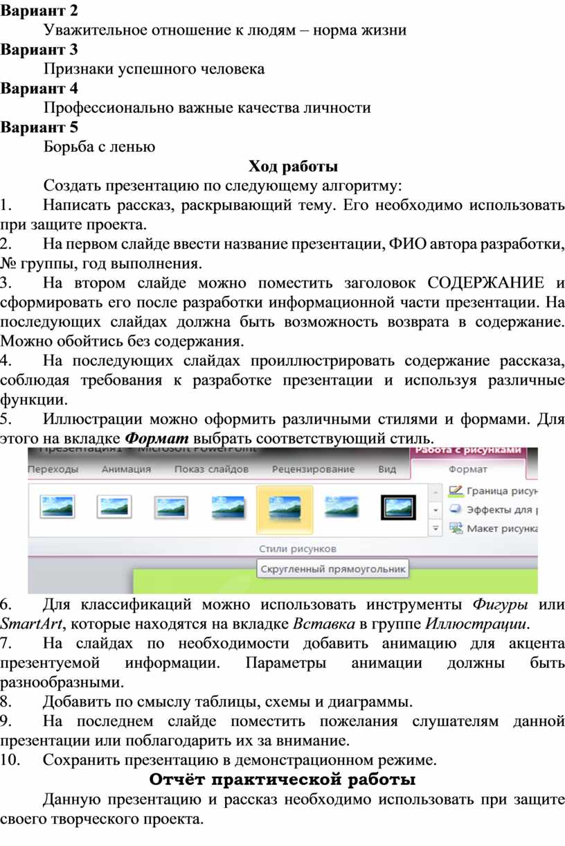 2. Познакомиться с приемами разработки презентации и применить изученный теоретический материал для выполнения задания данной практической работы.