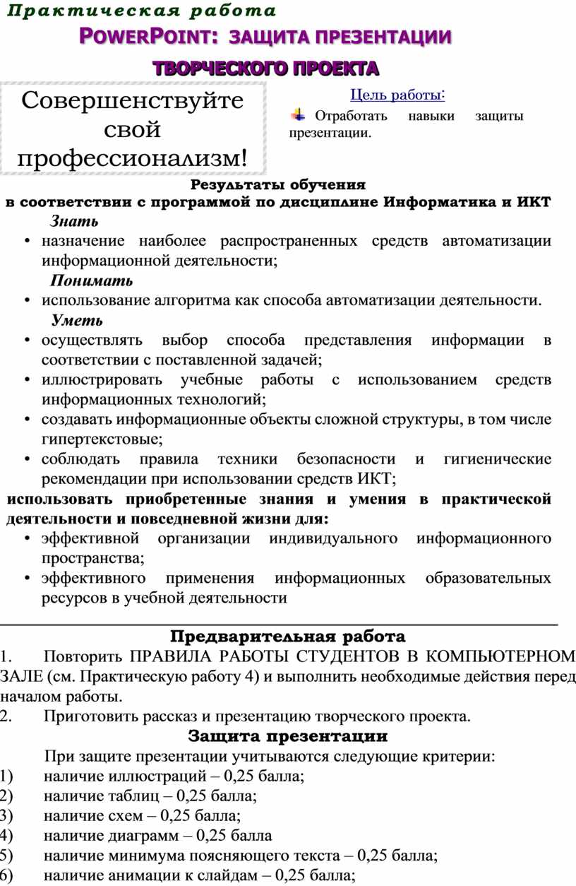 2. Повторить приемы разработки презентации и познакомиться с новым теоретическим материалом. Применить изученную информацию для выполнения задания данной практической работы.