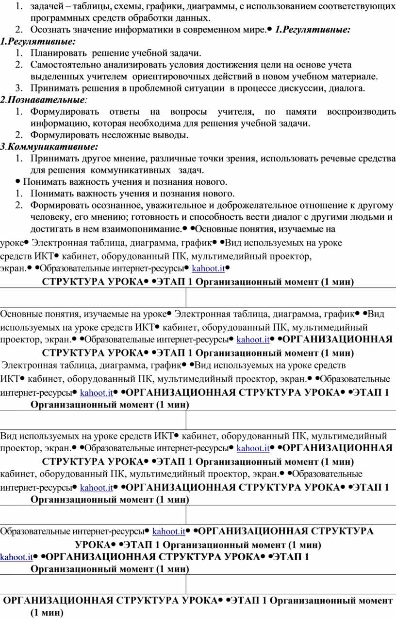 ОРГАНИЗАЦИОННАЯ СТРУКТУРА УРОКА |