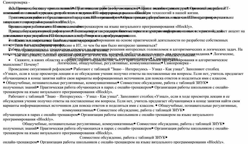 Организация работы школьников с онлайн-тренажером на языке визуального программирования «Blockly». Проведение ситуативной рефлексии. |
