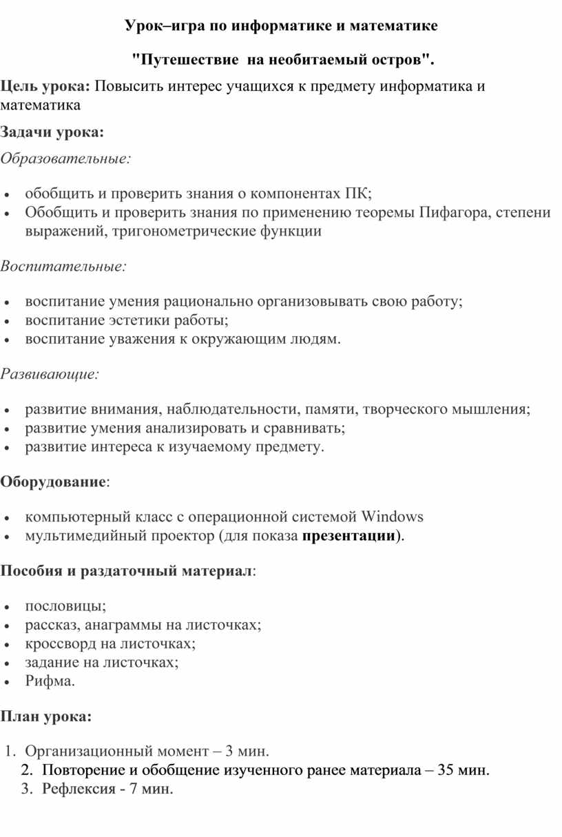 Цель урока: Повысить интерес учащихся к предмету информатика и математика