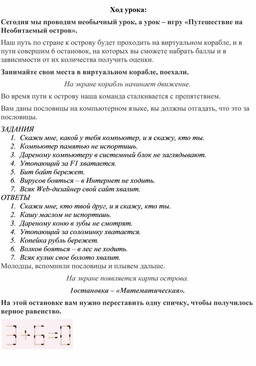 Сегодня мы проводим необычный урок, а урок – игру «Путешествие на Необитаемый остров».