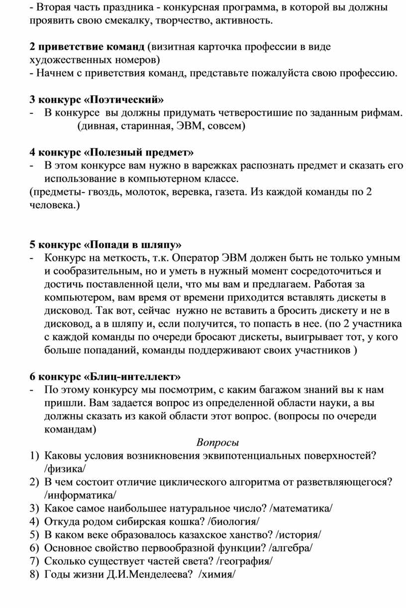 2 приветствие команд (визитная карточка профессии в виде художественных номеров)
