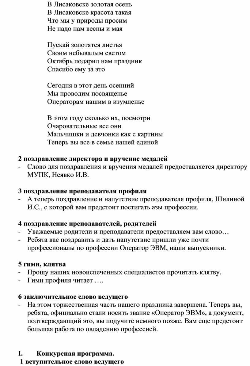 - А теперь поздравление и напутствие преподавателя профиля, Шилиной И.С., с которой вам предстоит постигать азы профессии.