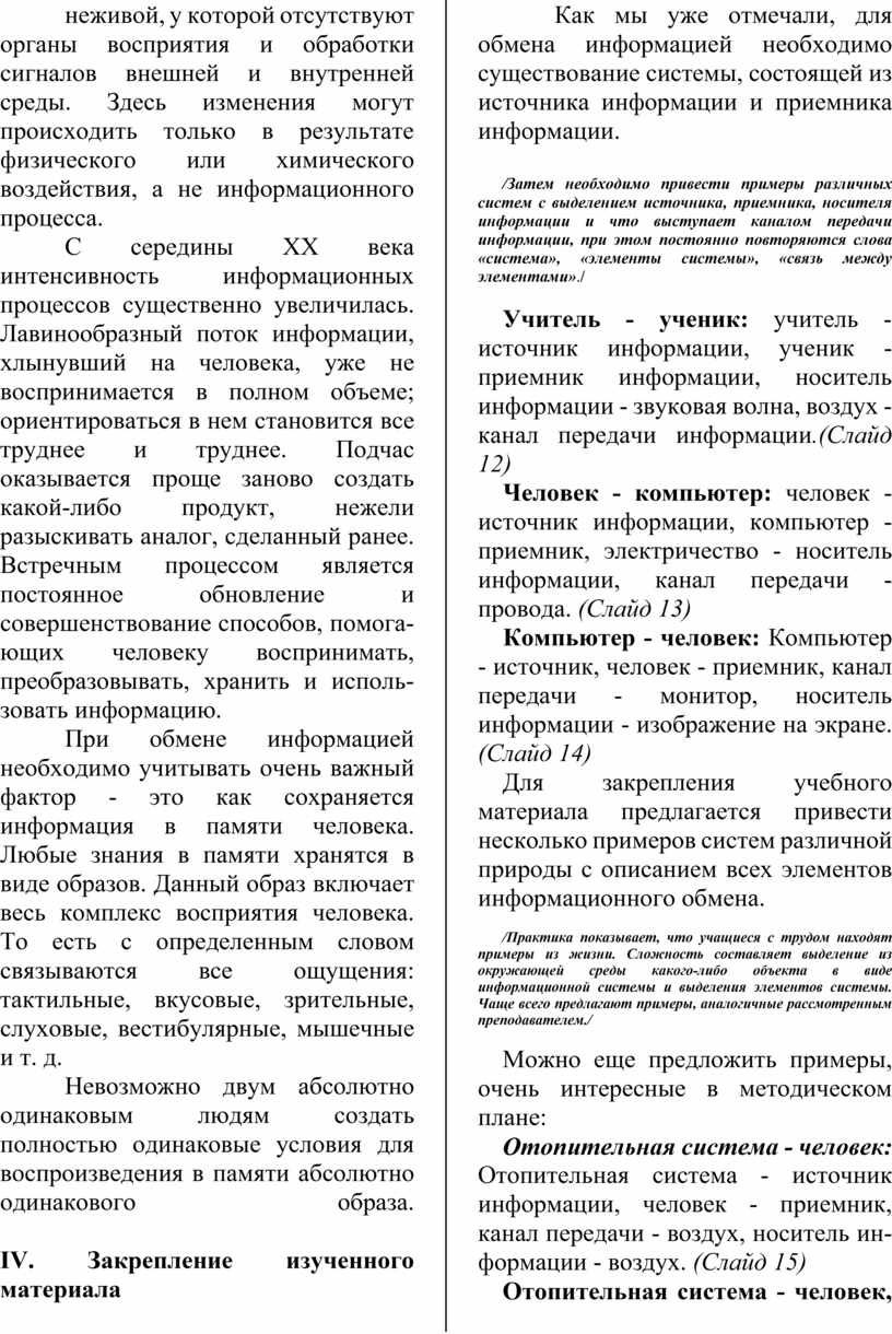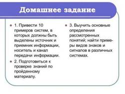 /Затем необходимо привести примеры различных систем с выделением источника, приемника, носителя информации и что выступает каналом передачи информации, при этом постоянно повторяются слова «система», «элементы системы», «связь между элементами»./