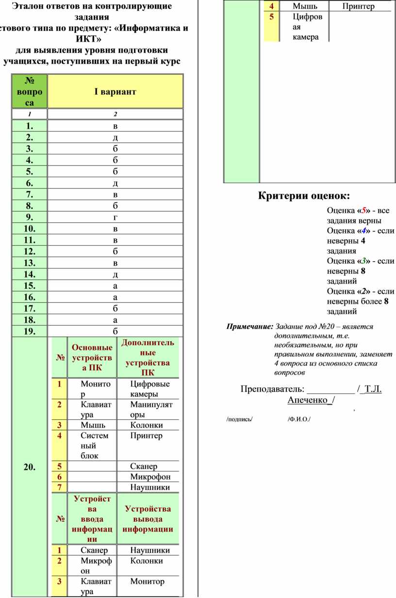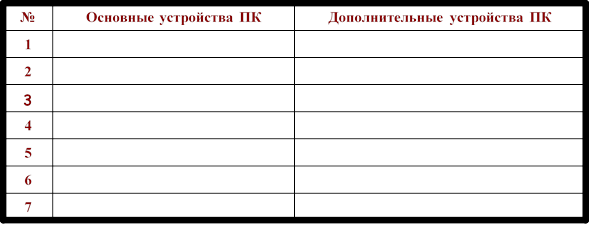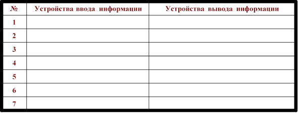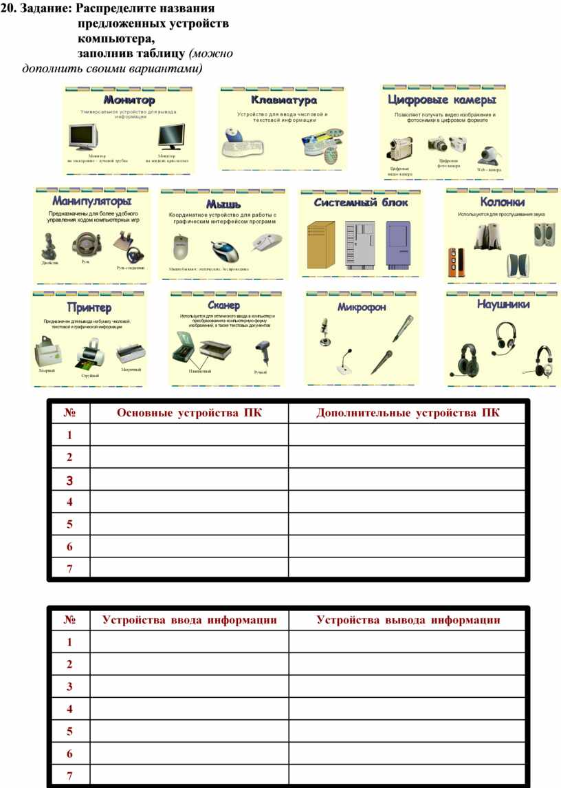 20. Задание: Распределите названия предложенных устройств компьютера,