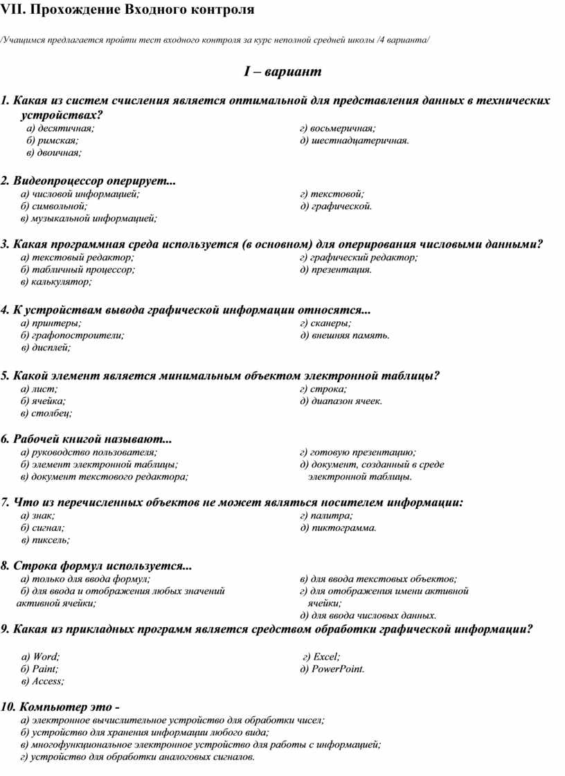 для выявления уровня подготовки учащихся, поступивших на первый курс