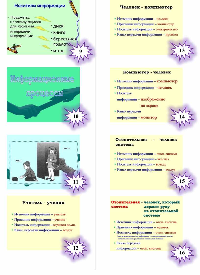 Отопительная система - человек, который держит руку на отопительной системе: Отопительная система - источник информации, человек - приемник, канал передачи - отопительная система, носитель информации - отопительная система (вода не является носителем информации, т. к. непосредственный контакт осуществляется именно с отопительной системой). (Слайд 16)