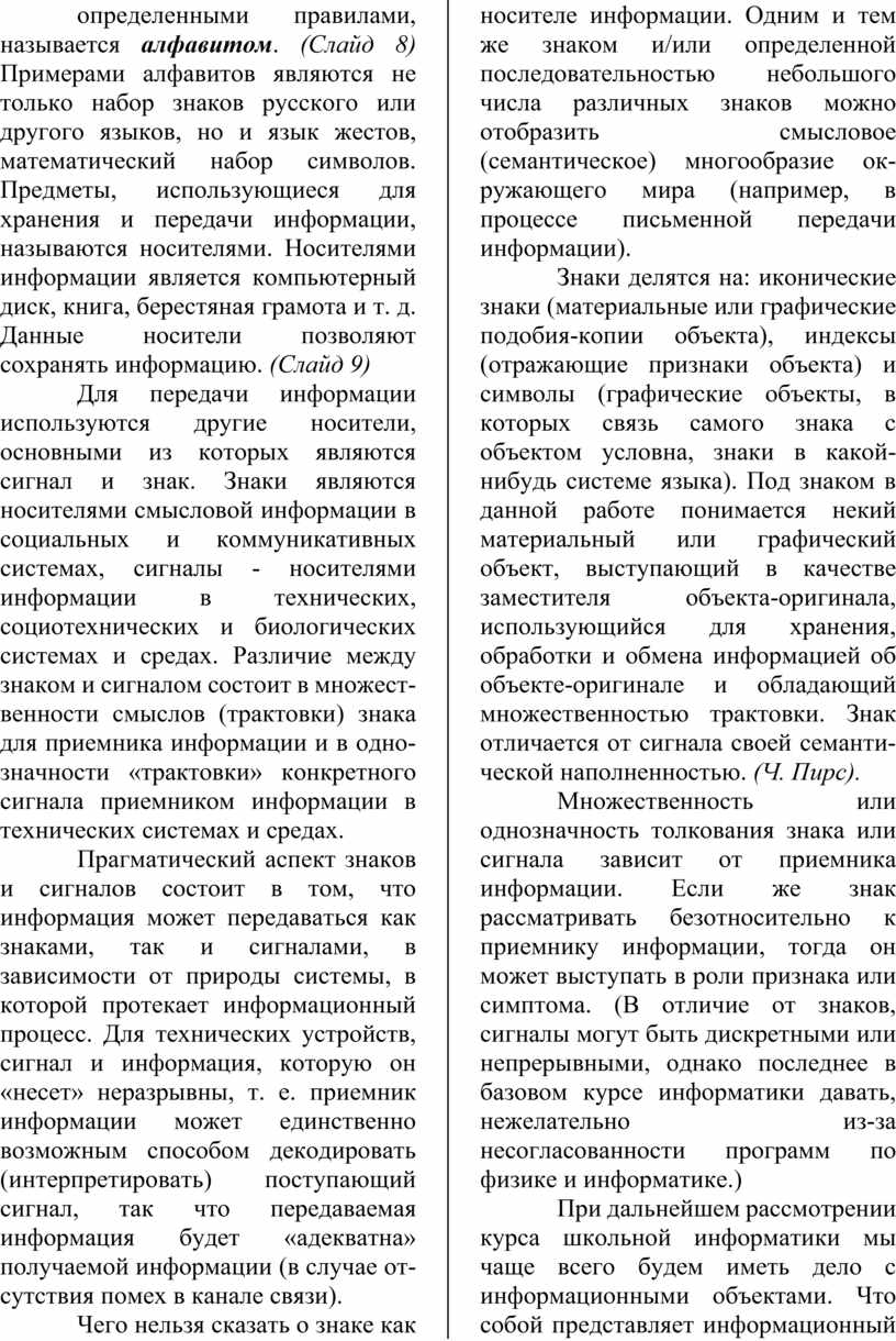 При дальнейшем рассмотрении курса школьной информатики мы чаще всего будем иметь дело с информационными объектами. Что собой представляет информационный объект?