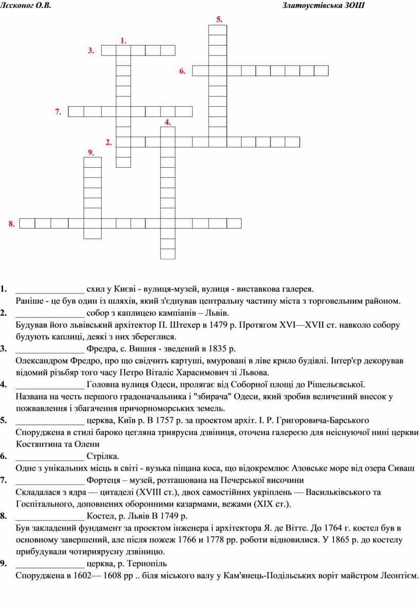 1. _______________ схил у Києві - вулиця-музей, вулиця - виставкова галерея.