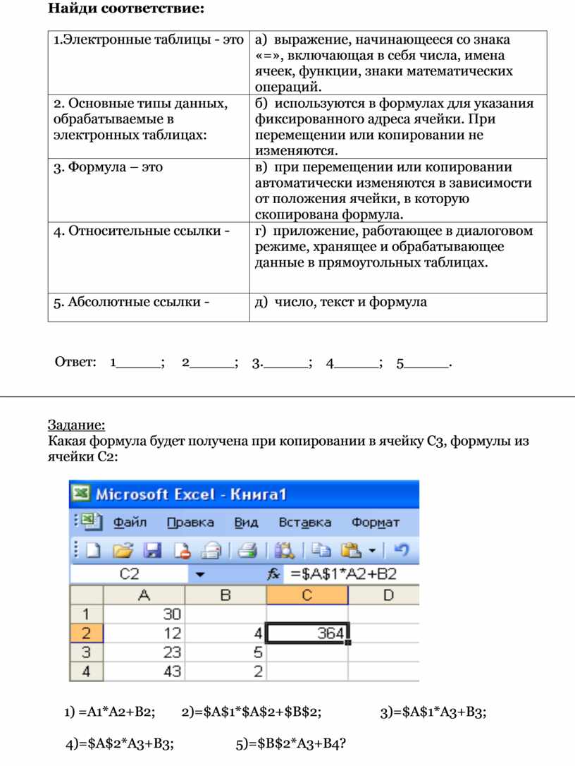 Какая формула будет получена при копировании в ячейку С3, формулы из ячейки С2: