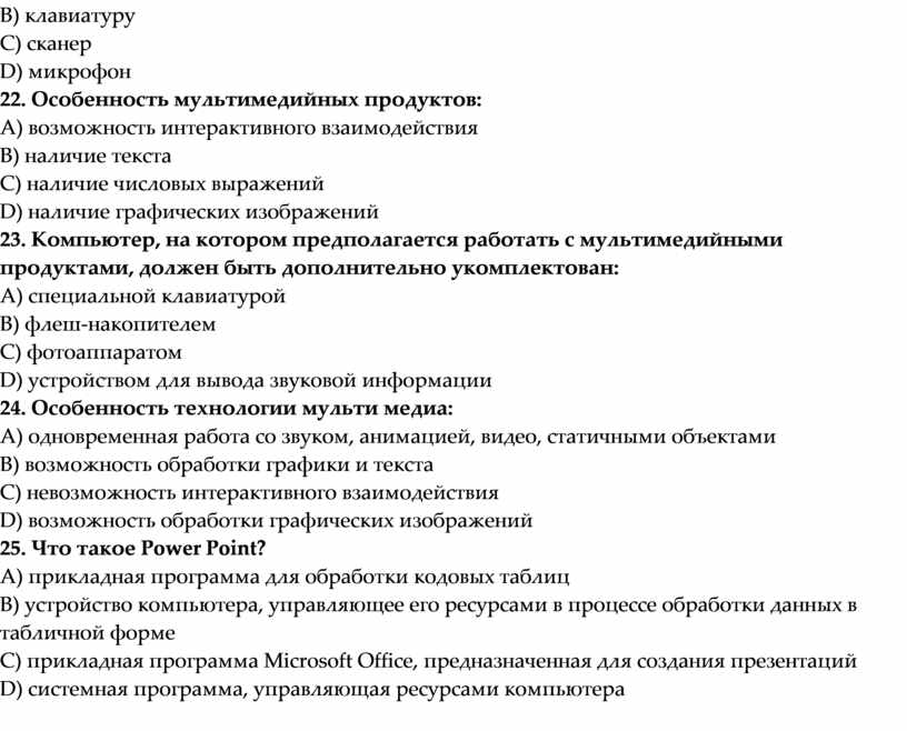 23. Компьютер, на котором предполагается работать с мультимедийными продуктами, должен быть дополнительно укомплектован: