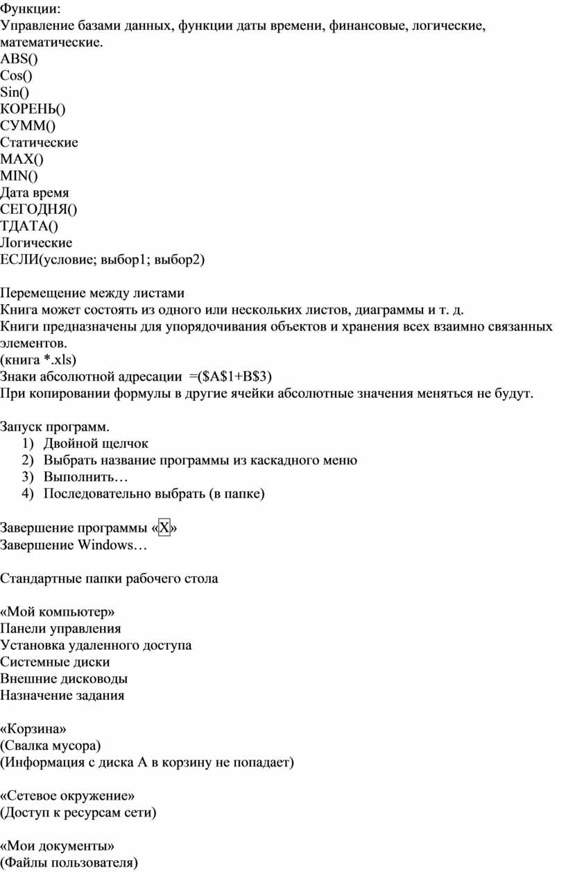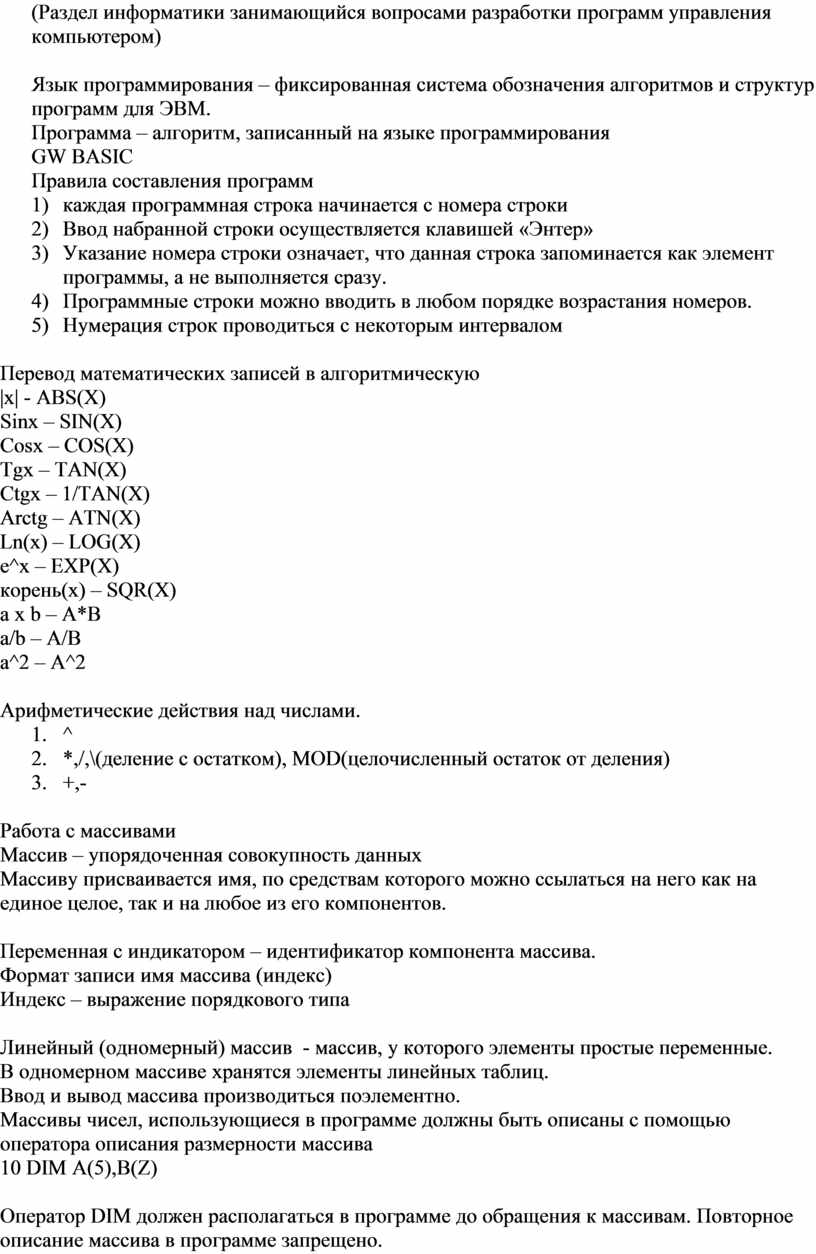 6) Оператор вывода (В операторе вывода запись в «» выводиться без изменений)
