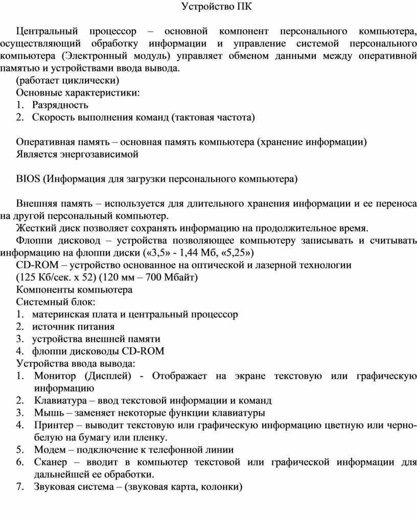 Устройство ПК