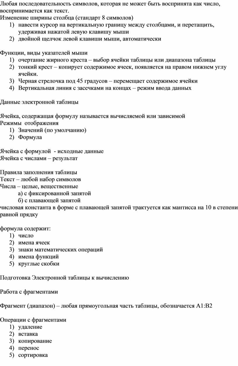 1) числовые операции