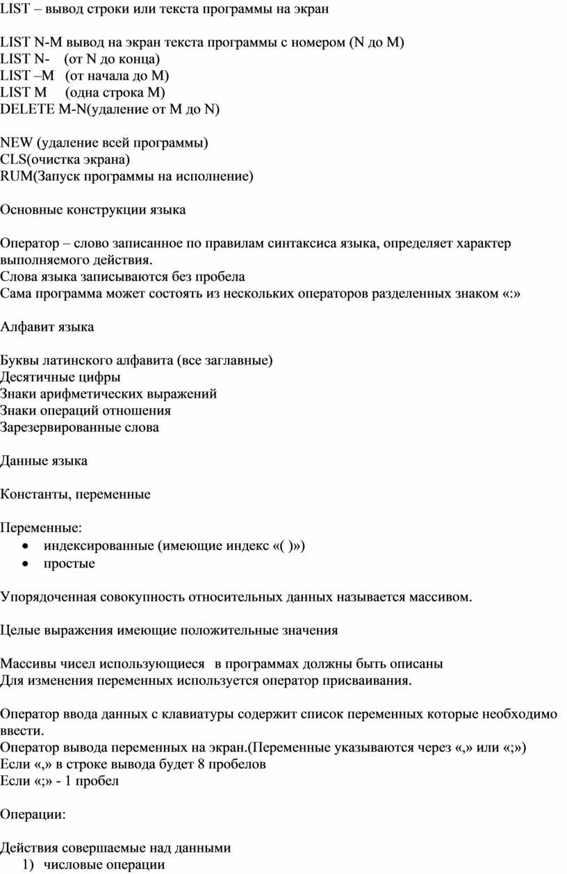 LIST – вывод строки или текста программы на экран