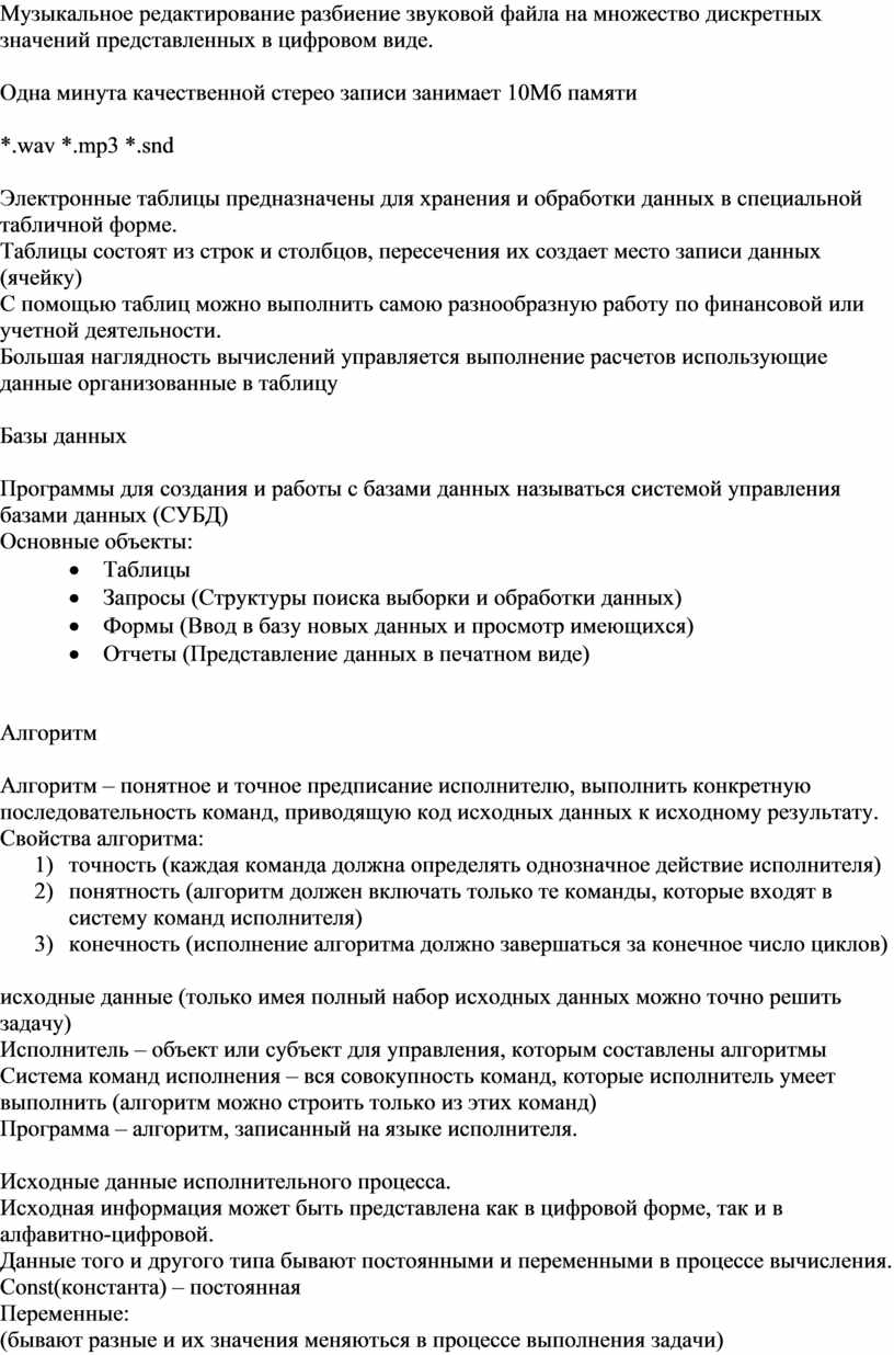 3. Обработка (получение новой информации из данной, сортировка, поиск)