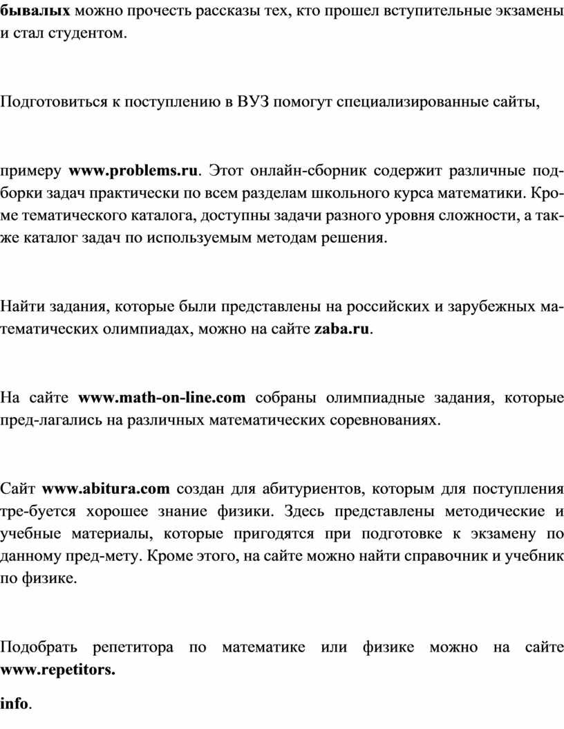 Подготовиться к поступлению в ВУЗ помогут специализированные сайты,