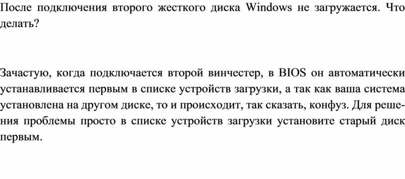 После подключения второго жесткого диска Windows не загружается. Что делать?