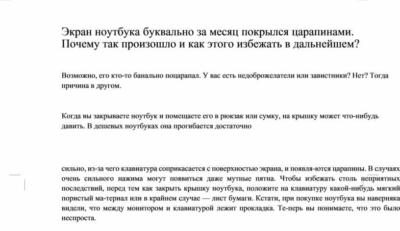 Экран ноутбука буквально за месяц покрылся царапинами. Почему так произошло и как этого избежать в дальнейшем?