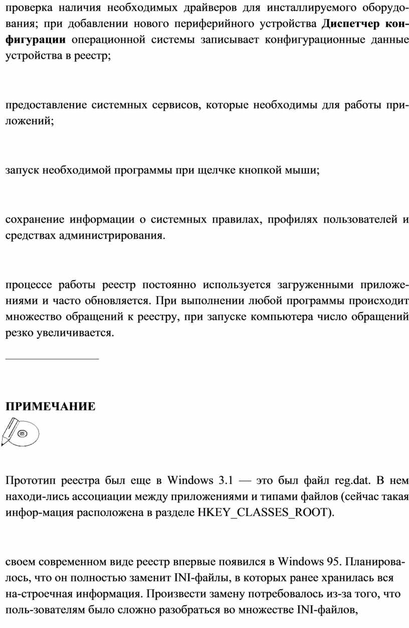 Вот лишь некоторые основные функции, которые осуществляет операционная система посредством реестра: