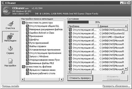 Рис. 9.3. CCleaner ищет ошибки в реестре