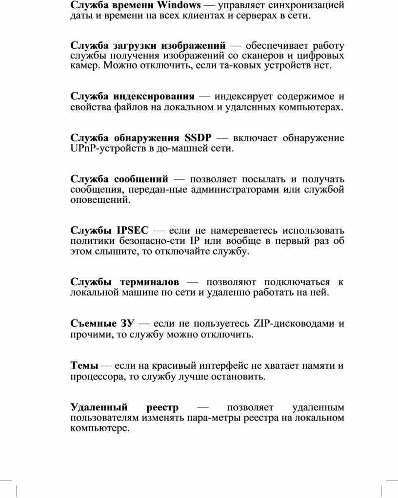 Службы IPSEC — если не намереваетесь использовать политики безопасно-сти IP или вообще в первый раз об этом слышите, то отключайте службу.