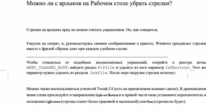Можно ли с ярлыков на Рабочем столе убрать стрелки?