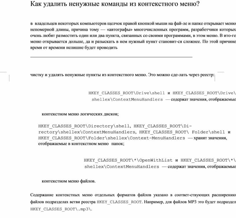 чистку и удалять ненужные пункты из контекстного меню. Это можно сде-лать через реестр: