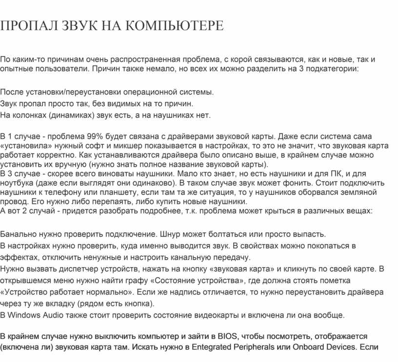 ПРОПАЛ ЗВУК НА КОМПЬЮТЕРЕ