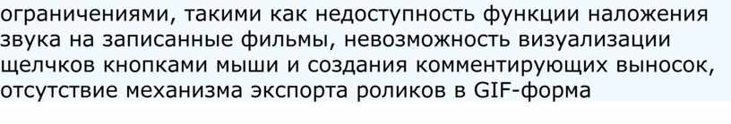 Утилита платная, но приобретение лицензии не входит в список обязательных требований, поэтому пользоваться приложением можно абсолютно бесплатно, мирясь с некоторыми ограничениями, такими как недоступность функции наложения звука на записанные фильмы, невозможность визуализации щелчков кнопками мыши и создания комментирующих выносок, отсутствие механизма экспорта роликов в GIF-форма