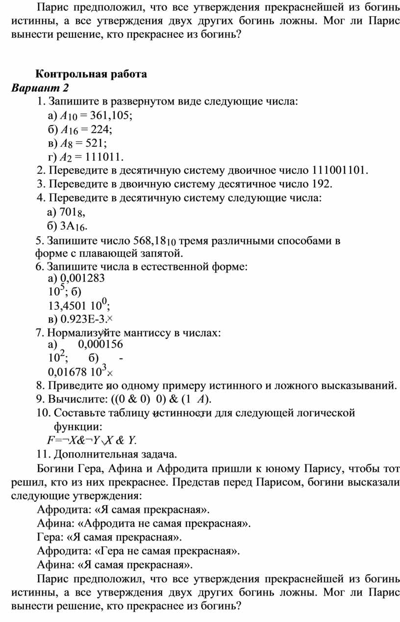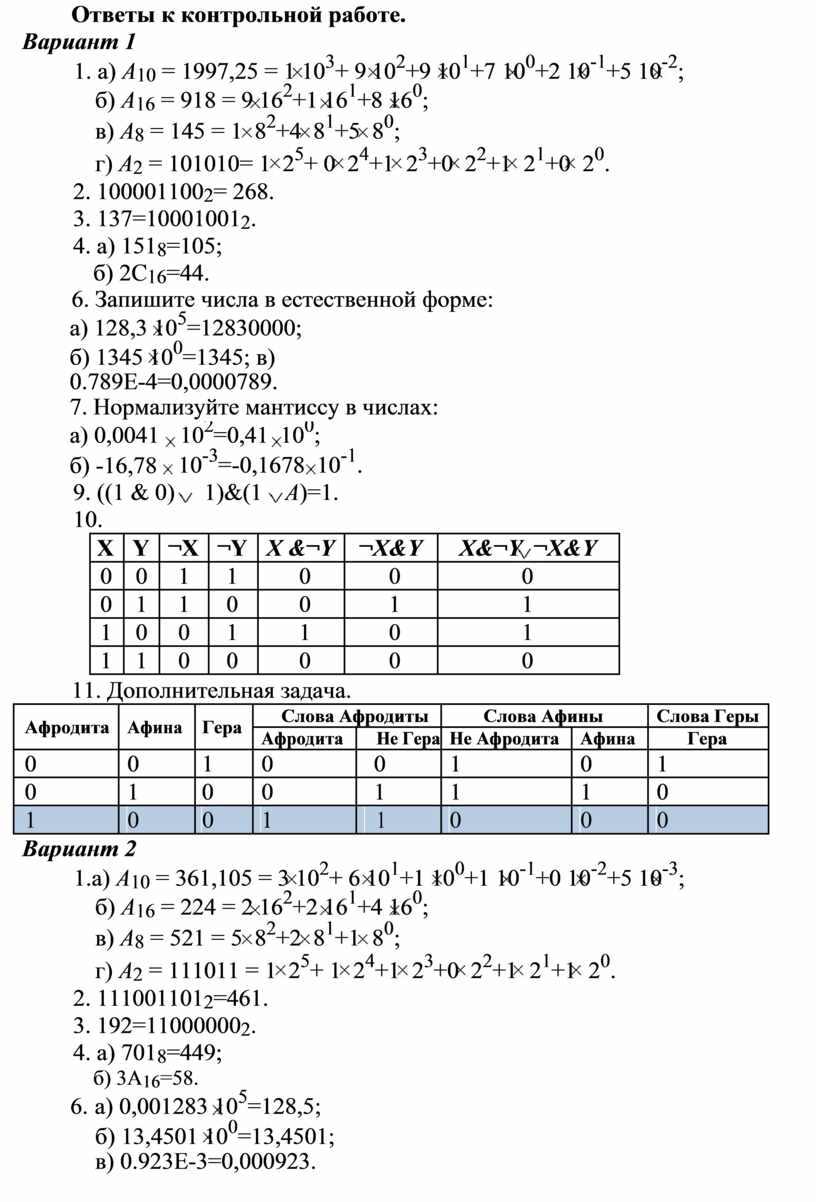 г) A2 = 101010= 1 25+ 0 24+1 23+0 22+1 21+0 20.