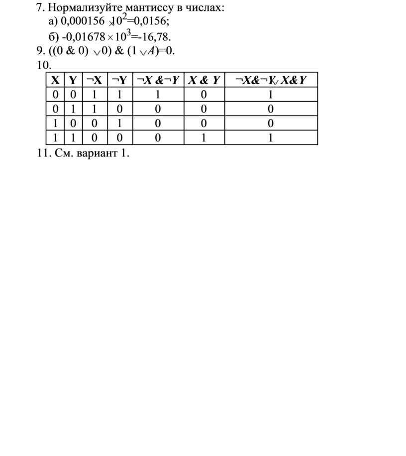 7. Нормализуйте мантиссу в числах: